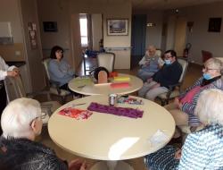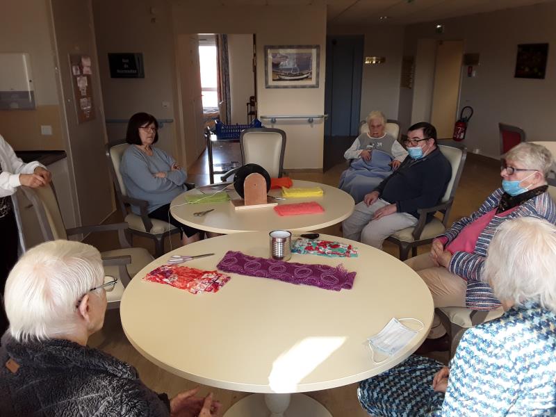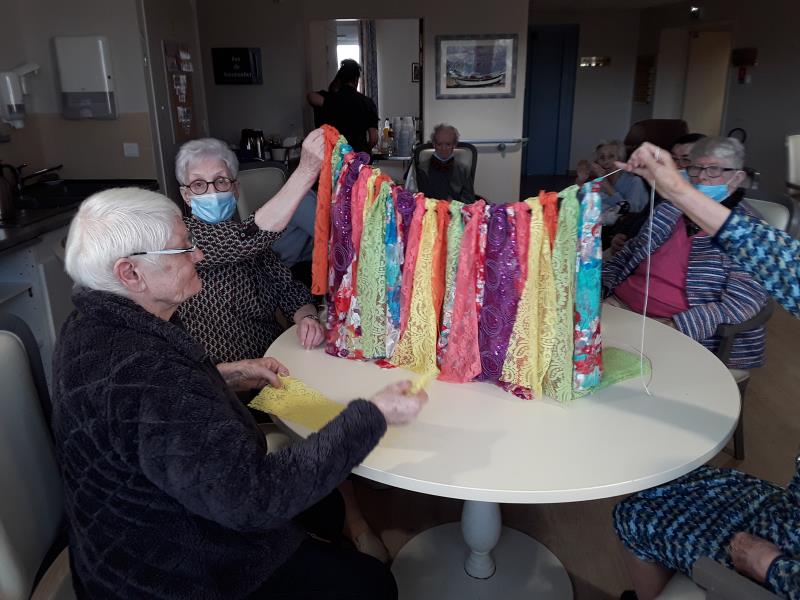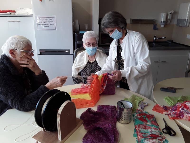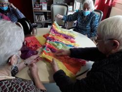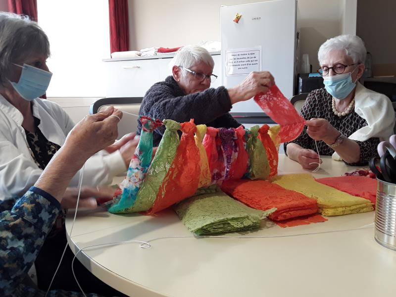 Les Jardins Médicis > Actualités > Atelier Manuel Atelier Manuel Publiée le 01/03/2021 Crėation d'une banderole en tissu coloré avec la participation active des Rėsidants. Nous avons fait la découpe des tissus lors d'un précédent atelier.
