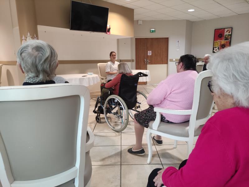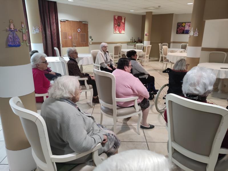 L’atelier de danse sur chaise a offert aux résidents un moment dynamique et convivial, alliant musique, mouvements doux et plaisir partagé.