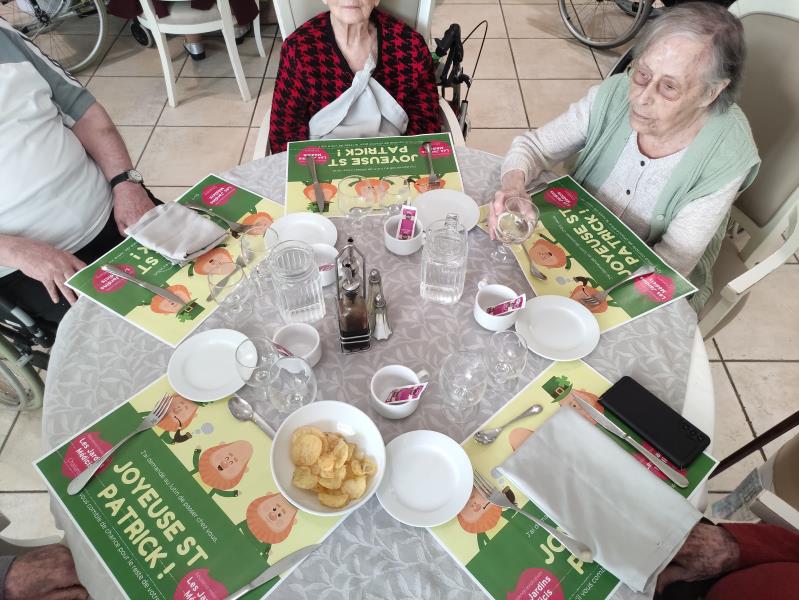 Les Jardins Médicis > Actualités > repas de la SAINT PATRICK repas de la SAINT PATRICK Publiée le 17/03/2026 Le repas de la Saint-Patrick à la résidence a été un moment chaleureux et convivial, très apprécié des résidents.
